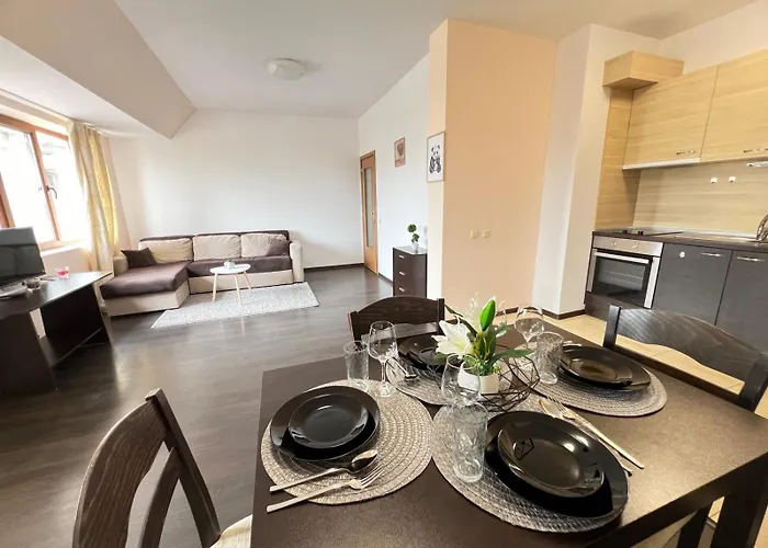 ベッドルーム1室のLazur Apartment Aqua ブルガスは、ラズール スタジアムから歩いて5分で、ブルガス空港から5キロメートルの場所にあります。
